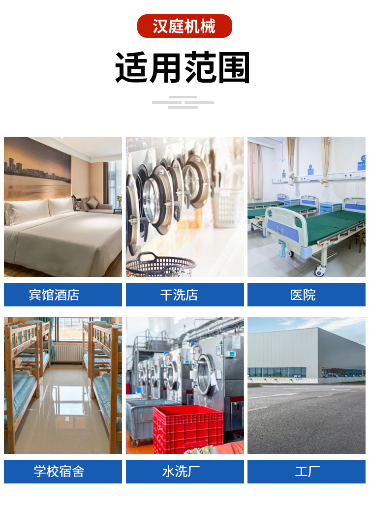 适用领域 | 洗涤行业 / 酒店 / 学校 / 医院 / 洗涤厂 / 干洗店等行业 | ||