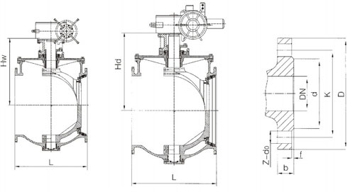 DYQ340H手动上装式偏心半球阀主要外形尺寸(mm) |