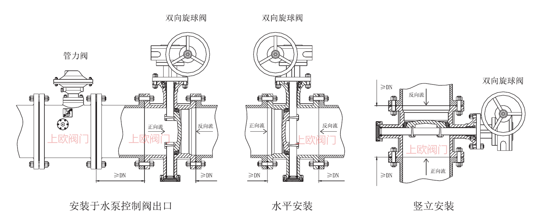 ZXQF9247HR电动双向承压硬碰硬旋球阀不但能在正向压力下可靠地截断,在反向压力或反向压力远大于正向压力时同样能可靠地密封。该阀密封采用半球阀的结构和原理,外形采用蝶式结构,从而具有:体积小、重量轻的特征;并具有:双向硬密封、密封摩擦小、经久耐用、启闭轻便等性能,因此,性价比远高于半球阀。该阀门的成功开发与运用,是阀门行业的一次重大技术改进。广泛应用于水泵出口端、管网系统、回收水系统、高位水槽、易水淹的污水系统、防倒流系统等需双向密封的场合,可用于冶金、矿山、化、化工、电力、环保、市政等行业作为管路启闭和调节使用。在双向流系统中该阀门一台相当于两台普通单向密封阀门。