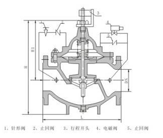 00X水泵控制阀,是一种安装在高层建筑以及其他给水系统的水泵出口处,防止介质倒流的逆止类阀门。当水泵即将停止供水前,阀门先行缓慢关闭90%左右,防止突然停泵而产生的水锤和水击声;当水泵完全停止后,阀门再完全关闭,防止泵出的水回流,有效地保护水泵,免受回流的冲击而产生反转。该产品是水泵出口必不可少的保护装置。阀门呈流线型设计,通过电磁阀的导控实现准确的启闭,使用安全可靠,有效地防止水锤河水击声,使用寿命长,安装、维修方便。