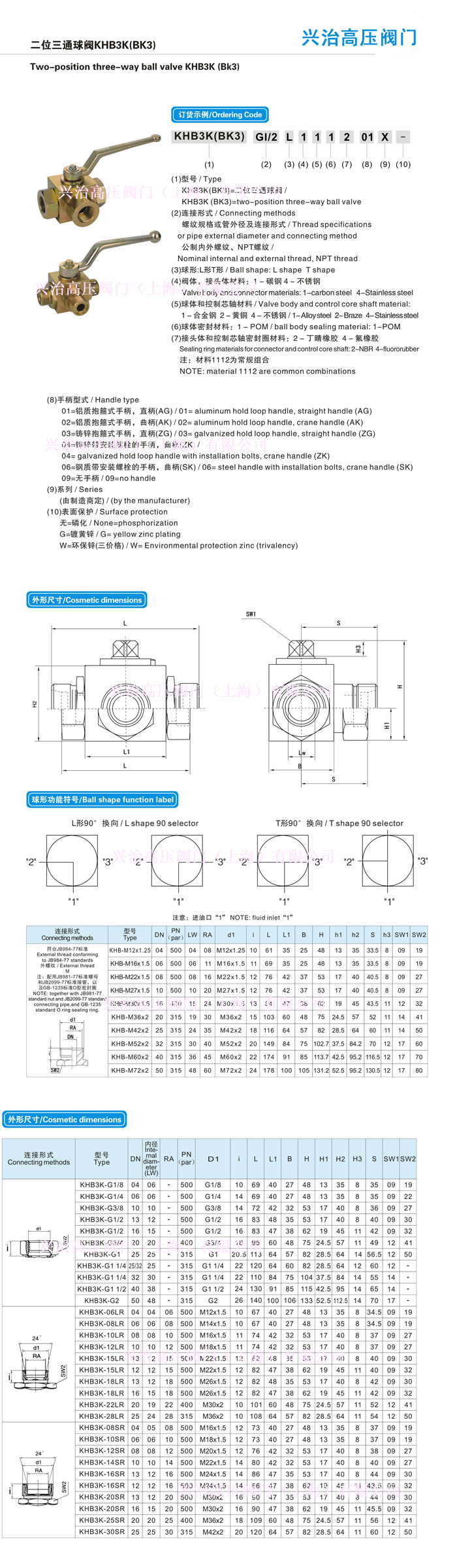 内螺纹三通高压球阀KHB3K/BK3-G1/4 G3/8 G1/2 G3/4 G1 G11/4 G2 是否进口 | 否 | ||