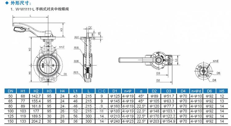 手柄式对夹中线蝶阀(W-W1111-L)蜗轮式对夹中线蝶阀(W-W1111-G)? ? ?