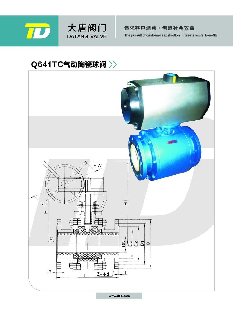 永嘉县大唐阀门有限公司是专业生产陶瓷阀门和各类阀门的企业,主要产品有陶瓷排渣阀、陶瓷球阀、气动双闸板陶瓷出料阀、气动双闸板陶瓷放料阀、陶瓷刀型闸阀、电动陶瓷排渣阀、陶瓷止回阀、手动陶瓷球阀、气动陶瓷球阀、电动陶瓷球阀、蜗轮传动陶瓷球阀、不锈钢陶瓷阀门、气动陶瓷蝶阀、手动陶瓷蝶阀、电动陶瓷蝶阀、陶瓷截止阀、电动陶瓷截止阀、圆顶阀、PZ673TC气动薄型陶瓷排渣浆液阀、PZ73TC手动陶瓷排渣浆液阀、Z673TC气动陶瓷出料阀、Z643TC陶瓷单闸板闸阀、BZ643TC摆动式陶瓷进料阀、H44TC防盗旋启式止回阀、H72TC对夹陶瓷止回阀、手动刀型闸阀、气动刀型闸阀、电动刀型闸阀、电液动刀闸阀、液动刀闸阀等;本公司自创办以来注重科技,外联内引人才,一直潜心致力各种阀门的研制开发和改进,公司拥有先进的管理机制和精良的机械加工专用设备和检测、测试、设备。产品从原材料,入库到成品出厂全部过程中的每一个环节均严?格按照ISO9001-2000质量保证体系组织生产,严格保证了产品的质量。