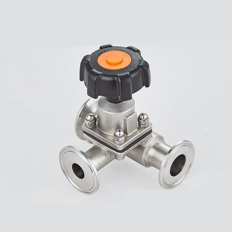 卫生级三通隔膜阀由驱动装置进行或通过手柄进行手动操作,驱动装置有三种标准:常闭形、常开型及气气型。具有结构简单、造型美观、拆装快捷,操作灵活,流体阻力小,使用安全可靠等优点。适用于化工、石油、冶金、水暧、食品、药品等行业的水、气、油品及腐蚀性介质的控制。