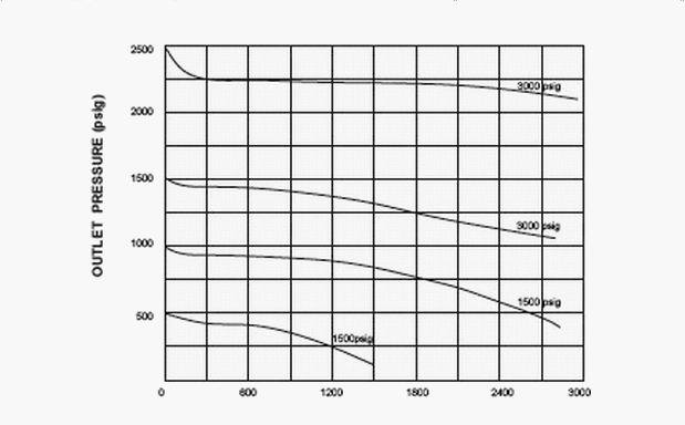 2、本阀介质走向由上进下出,当调节出口压力时,顺时针旋转调节螺栓迫使活塞向下移动,打开主阀,改变节流面积,造成压力损失,实现减压。由于阀后介质通过“X”通道流入活塞下腔并与活塞上方保持平衡,当压力和流变化时,使主阀节流面积始终保持相应位置。