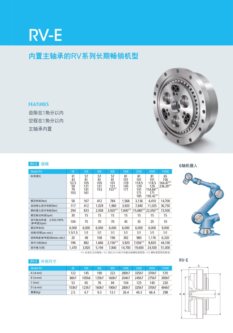 RV减速机是采用了planocentric方式的减速结构的高精密控制用减速机。由于该减速机同时咬合齿轮数较多,所以具备小型、轻量特点的同时,也具有高刚性、耐过载的特点。另外由于间隙、旋转振动、惯性小。所以具有良好的加速性能,可实现平稳运转并获取正确的位置精度。在产业用机械手、机床、装配装置、搬运装置等领域都有一定的成绩。