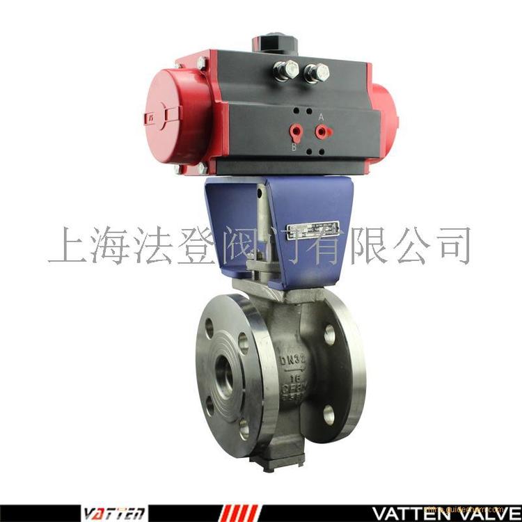 气动钛材法兰V型球阀,污泥-纸浆介质切断气动阀
