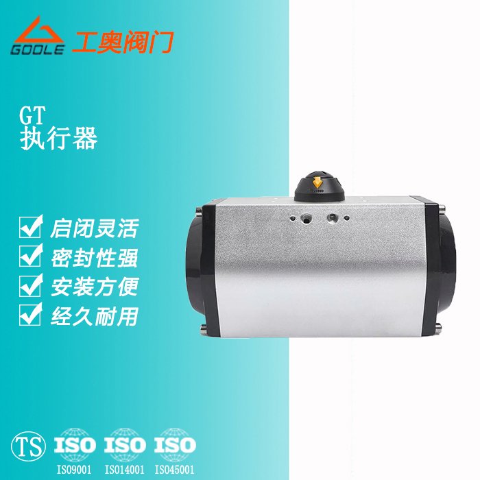 气动执行器是用气压力驱动启闭或调节阀门的执行装置,又被称气动执行机构或气动装置,不过一般通俗的称之为气动头。气动执行器有时还配备一定的辅助装置。常用的有阀门定位器和手轮机构。阀门定位器的作用是利用反馈原理来改善执行器的性能,使执行器能按控制器的控制信号,实现准确的定位。手轮机构的作用是当控制系统因停电、停气、控制器无输出或执行机构失灵时,利用它可以直接操纵控制阀,以维持生产的正常进行。