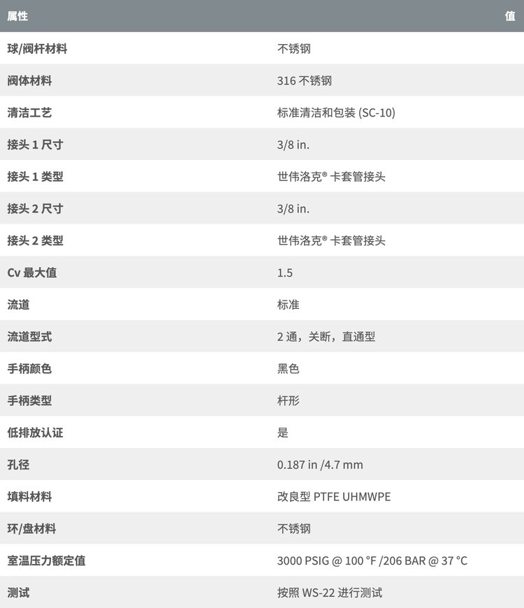 Swagelok世伟洛克SS-43GS6球阀3/8 in.卡套管接头40G系列1.5 Cv球阀 品牌 | Swagelok世伟洛克 | ||