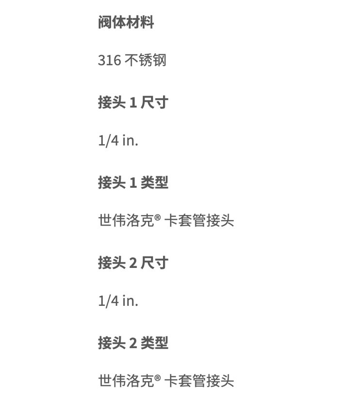 Swagelok世伟洛克SS-42GS4球阀1/4 in.卡套管接头 40G系列0.6 Cv球阀 品牌 | Swagelok世伟洛克 | ||