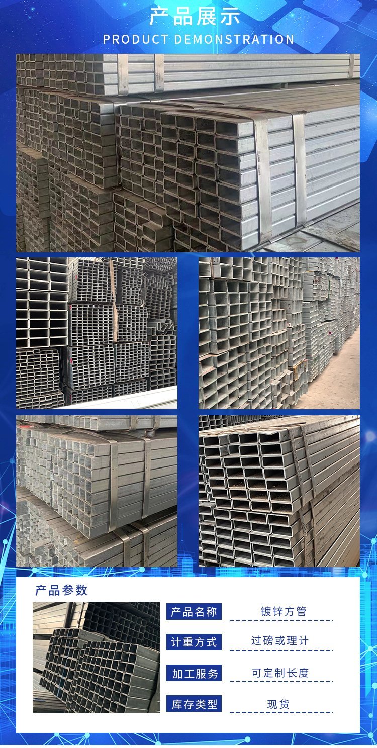 大家都明白,通常情况下方钢管厂所生产制造的热镀锌方管是将方钢管加工成型之后再放到镀锌池完成化合反应,使其在表层生成多一层镀锌层,以起到防腐防锈的目的 5.冷镀锌钢管只镀锌钢管的一面,而热镀锌钢管要把钢管表面全部镀锌 镀锌方管其防护作用更强,抗腐蚀能力强。整个结构由锌生成致密的四元结晶体,此结晶体在钢板上生成一层屏障,因而有效的防止腐蚀因子穿透。耐腐蚀性来自锌的障碍层保护功能强。当锌在切边、刮痕及镀层擦伤部份作牺牲保护时,锌便生成不能溶解的氧化物层,发挥屏障保护功能。