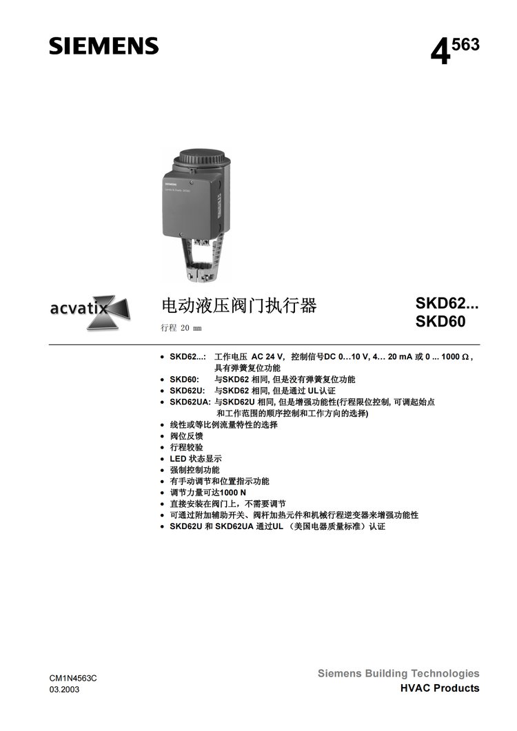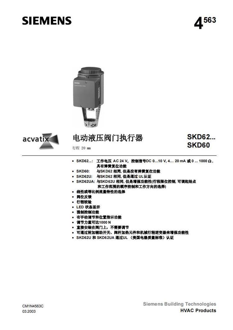 西门子电动液压调节阀SKD62/HXVVQT断电复位信号DC 0-10V AC4-20MA 品牌 | 西门子 | ||