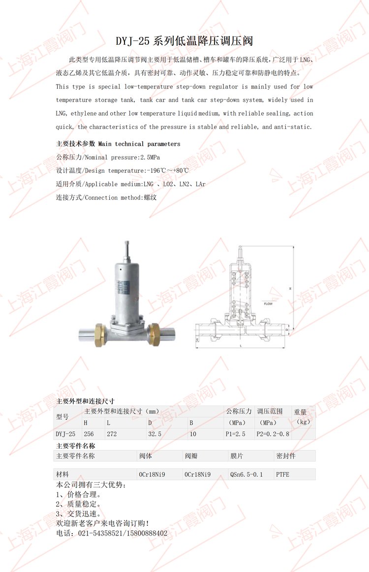 DYJ-25P低温降压调压阀DY22F-40P/25P低温降压调节阀 品牌 | 上海江霞阀门 | ||