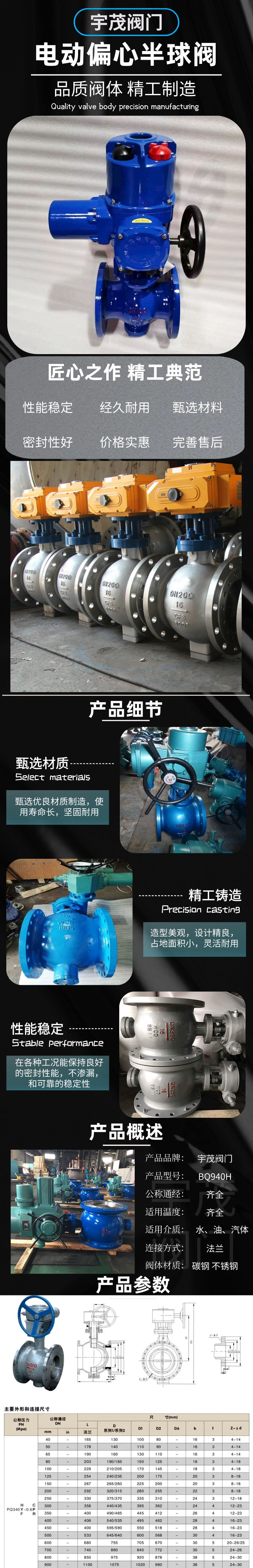 宇茂阀门电动偏心半球阀铸钢侧装式法兰连接