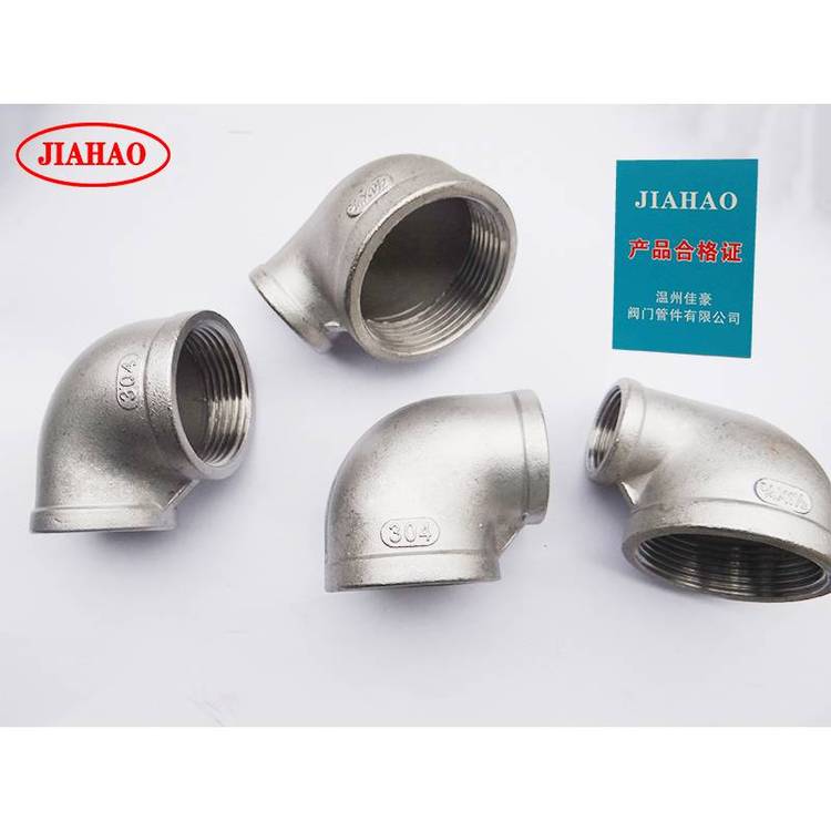 佳豪GB/T26120 304SS不锈钢铸造内丝内螺纹直角90°度弯头,内螺纹弯头,内丝弯头,有等径异径,有内外丝形式 铸造工艺 低压管道 螺纹为英制螺纹 数控加工 螺纹光滑 外表美观 耐压高 耐腐蚀。主要规格有DN6 DN10 DN15 DN20 DN25 DN32 DN40 DN50 DN65 DN80 DN100等,在民用水暖工程 机电工程 化工工程 气动气源工程 机电一体化工程 仪表仪器工程 治金工程 造纸工程 等各种行业应用。