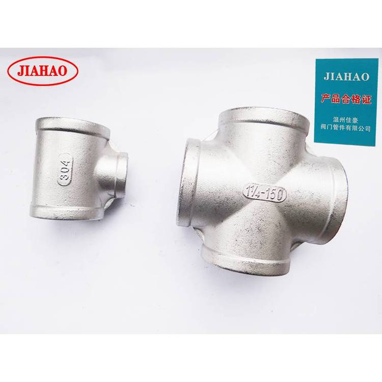 佳豪GB/T26120 304SS不锈钢内丝内螺纹四通中间接头,四通中间接头 内螺纹,铸造工艺,铸造工艺,数控加工 螺纹 光滑,外表美观,在各各种管道中应用。主要规格 有DN15 DN20 DN25 DN32 DN40 DN50等,螺纹英制螺纹,在民用水暖工程 电力 工程 化工工程 机电一体化工程 气动气源工程等多行业应用。