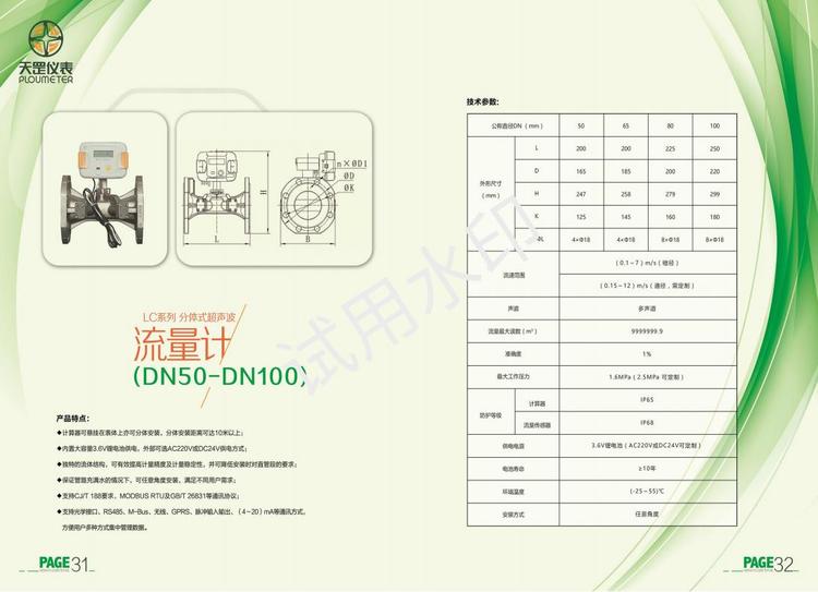 LC系列天罡分体/一体超声波流量计流量传感器 品牌 | 天罡 | ||