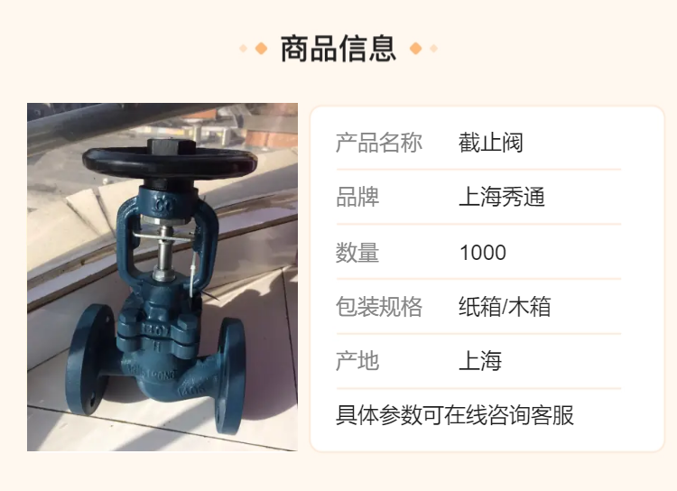 上海秀通五金机电设备有限公司 智能客服智能客服在线解答,若涉及资金打款事宜,务必与厂家进行电话确认。