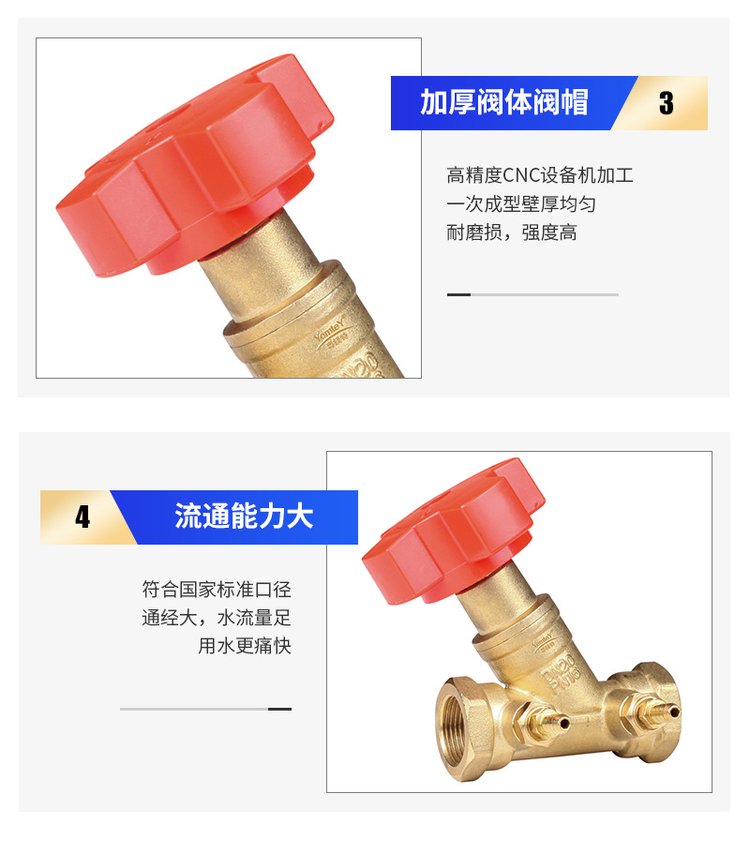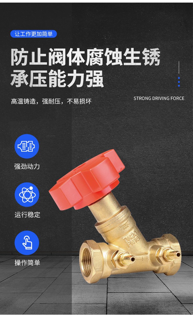 黄铜数字锁定平衡阀静态平衡水力流量调节阀带排污阀门