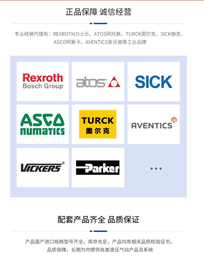上海安构机械设备有限公司一家从事经营自动化仪表备件、液压泵阀的贸易型公司;专注于中国工业传动自动化流体领域。主营产品数控模块、伺服电机、可编程控制器、传感器、气动元件、工业仪器仪表、电磁阀、柱塞泵、液压元件等。经营品牌有:贝加莱B&R、西门子Siemens、本特利bently、爱尔泰克Airtec气动、安沃驰Aventics、博世力士乐rexroth、阿托ATOS、迪普马DUPLOMATIC、Parker派克、伊顿EATON VICKERS等品牌。