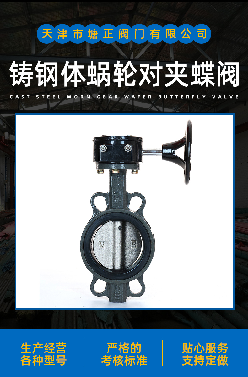 塘正 铸钢体球墨铸铁软密封三元乙丙中压 涡轮对夹蝶阀 D371X-10/16Q 产品 | 铸钢体蜗轮对夹蝶阀 | ||