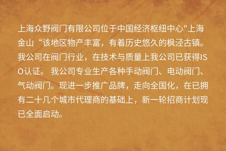 上海众野阀门有限公司 智能客服智能客服在线解答,若涉及资金打款事宜,务必与厂家进行电话确认。
