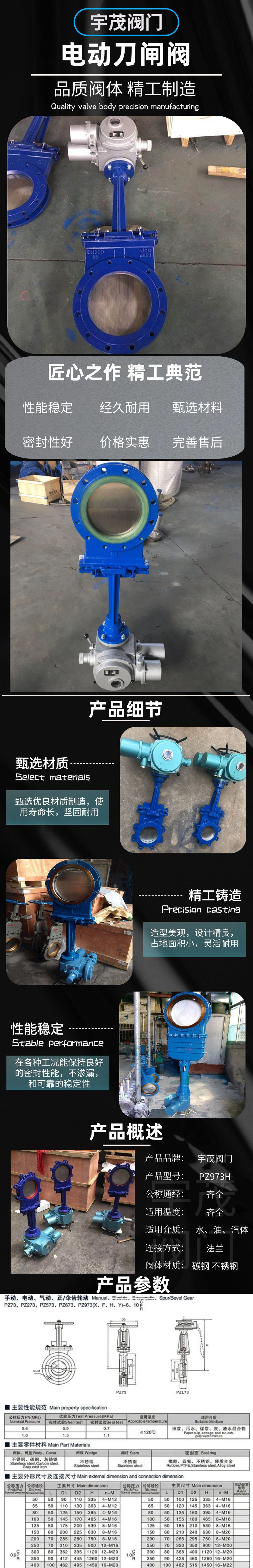 宇茂阀门电动刀闸阀PZ973H明杆暗杆插板阀颗粒耐磨卸灰