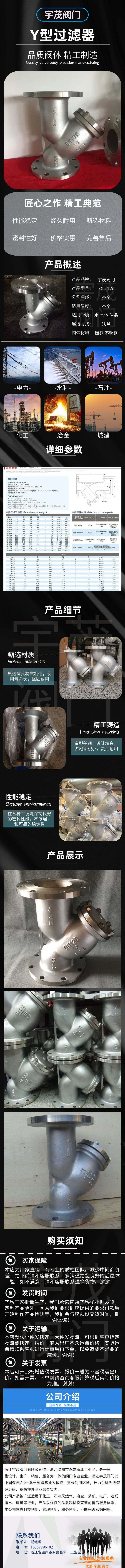 宇茂阀门不锈钢Y型过滤器天然气GL41W法兰连接