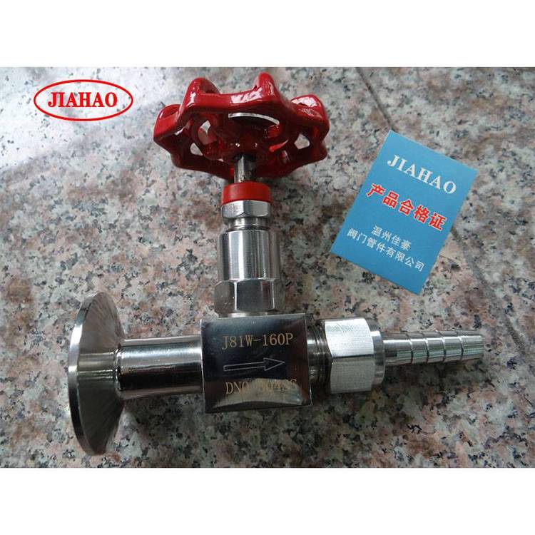 佳豪J81W-16P DN10 304SS不锈钢卡箍卡套式截止针型阀门,卡箍式连接方式,卡箍的卡盘直径一般有50.5 64 77.5 91 106等,主要和卡箍快装接头连接使用。在电力工程,机电工程,化工工程,机电一体化工程,气源工程,仪表仪器工程多行业应用。