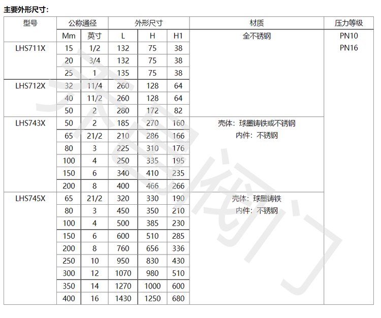 材质 | QT450/WCB/不锈钢 | ||