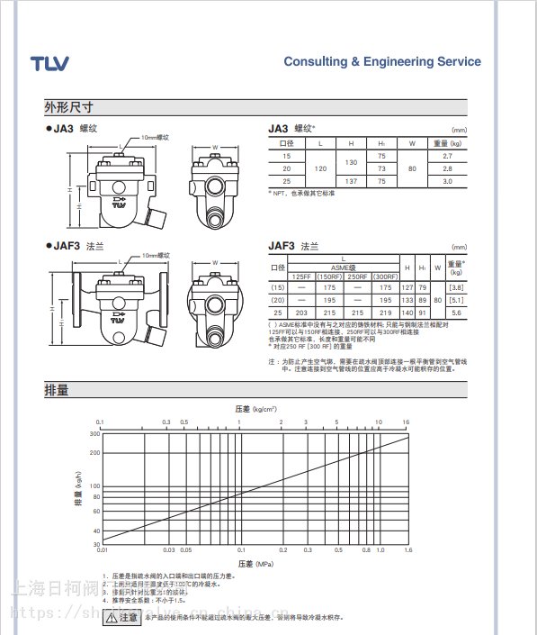 JA3-166/A日本TLV空气疏水阀-螺纹连接,材质:球墨铸铁 公称直径 | 15cm | ||