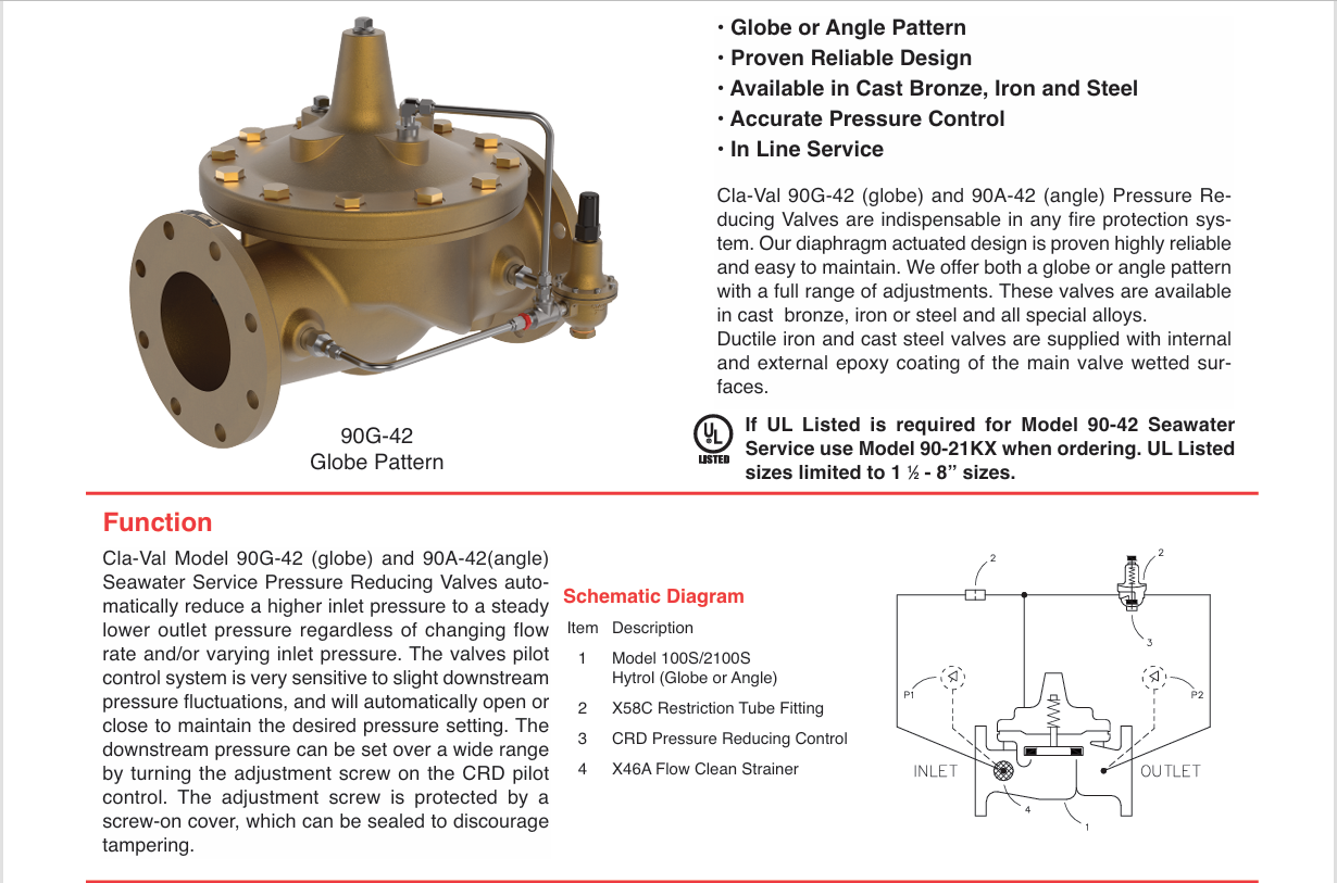 UL认证海水减压阀90G-42_美国CLA-VAL克拉瓦尔