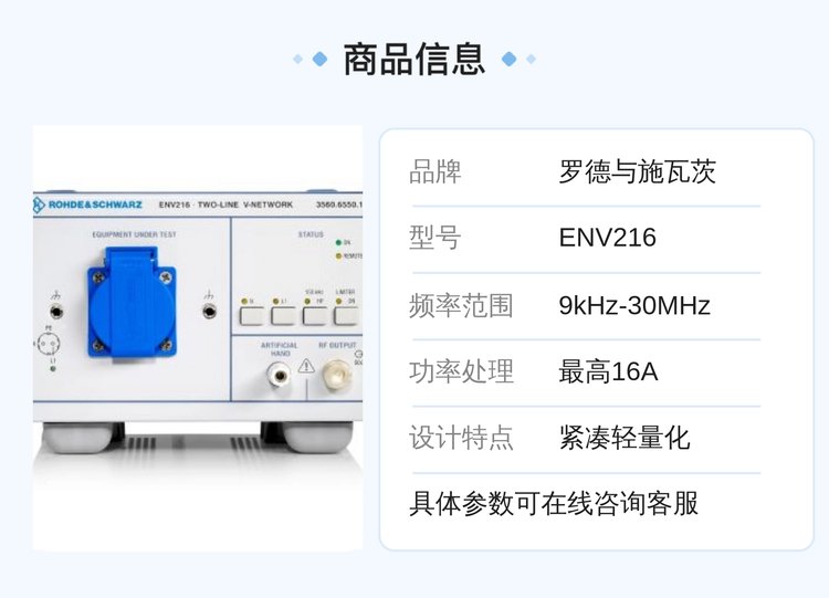 罗德与施瓦茨ENV216二线制V形网络品牌信誉多标准符合