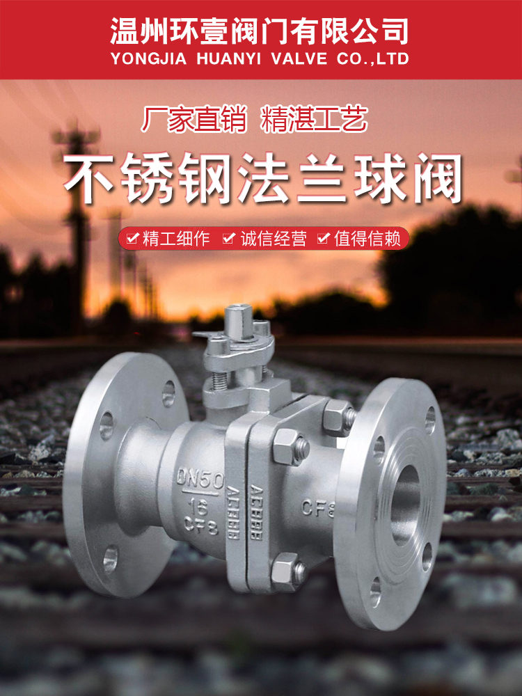 环壹阀门化工部不锈钢手动法兰球阀304材质二片式支持定制