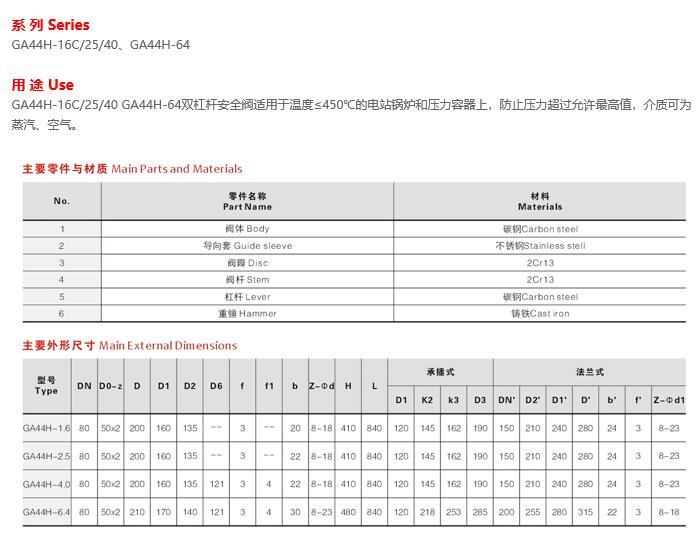 永一 GA41H GA51H单杠杆安全阀 GA44H-16C/25/40GA44H-64双杠杆 品牌 | 永一 | ||