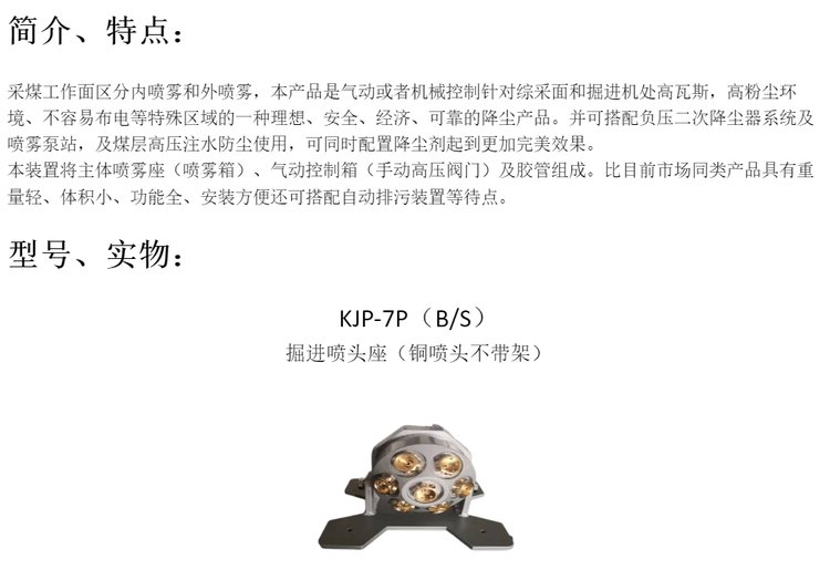 KJP-7P/2P/1P 掘进喷头座 可选铜/不锈钢喷头带不带架 品牌 | 力华 | ||