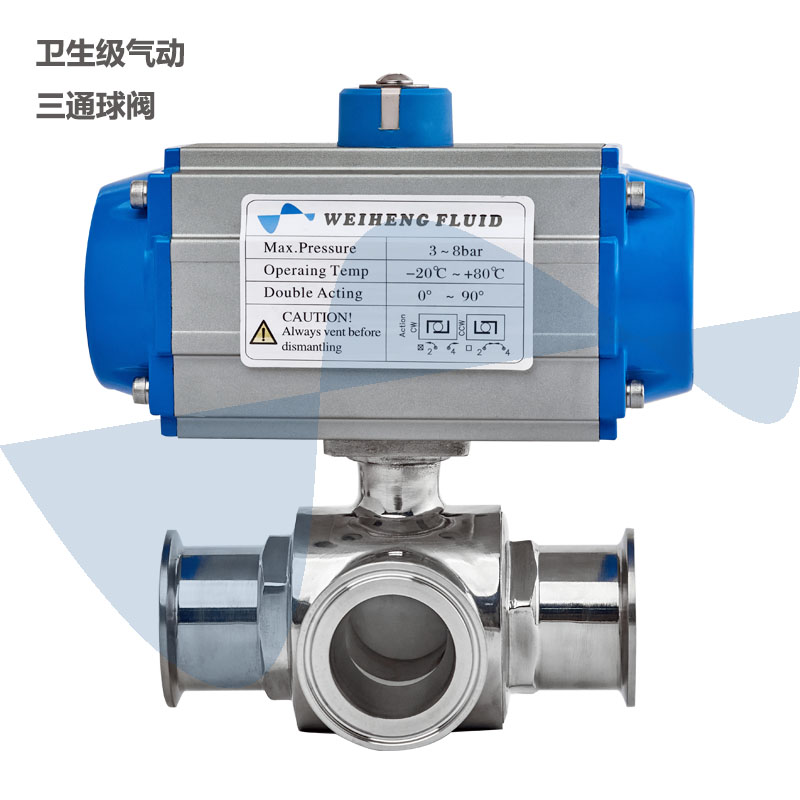 伟恒流体卫生食品级不锈钢气动三通快装球阀快开换向阀