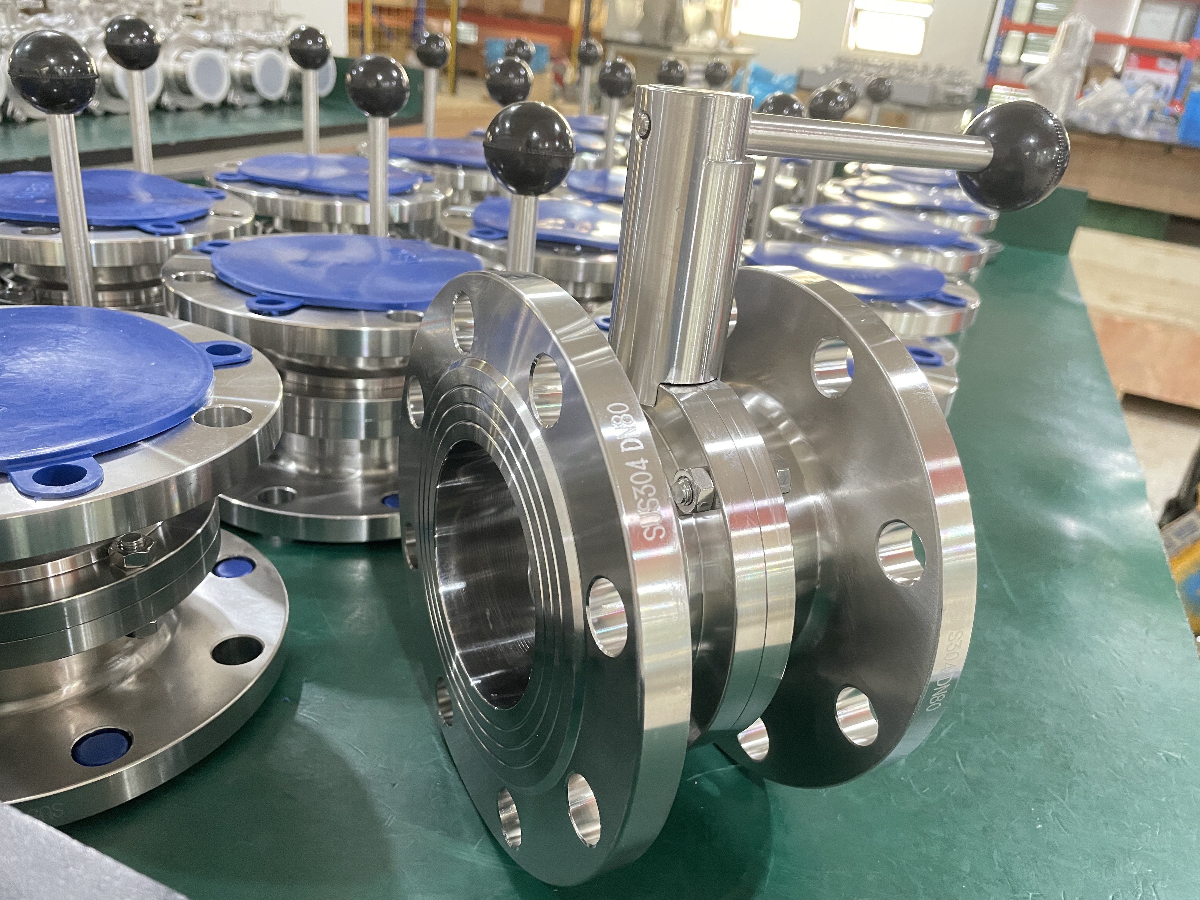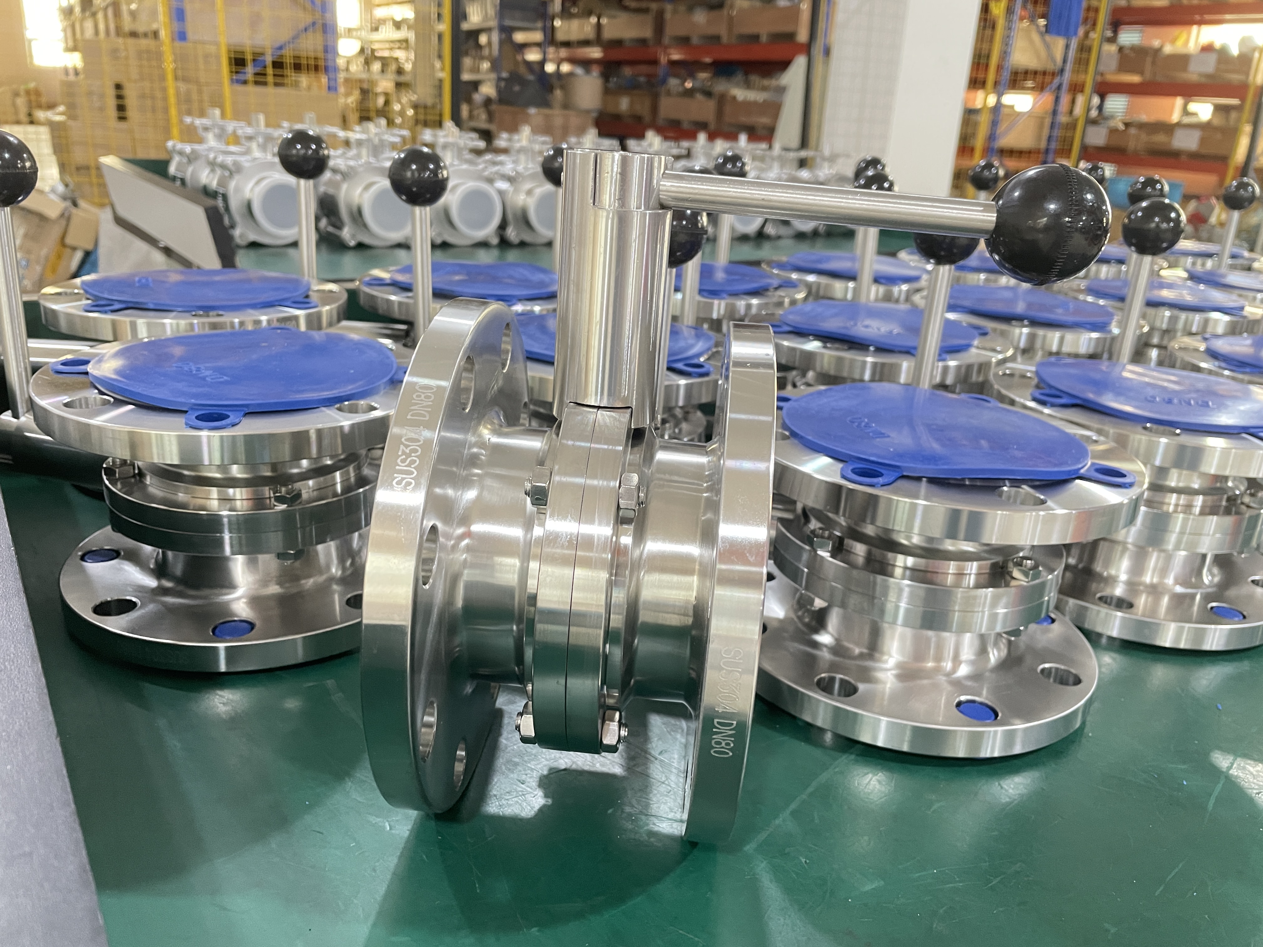 伟恒流体卫生级不锈钢304手动法兰蝶阀食品级快关粉体阀