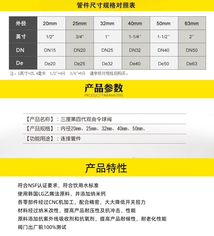 尺寸 | 1/2” - 2” ; 20mm - 63mm ; DN15 - DN50 | ||