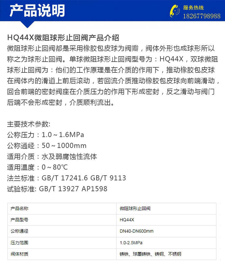 产品名称 | HQ44X微阻球形止回阀 | ||