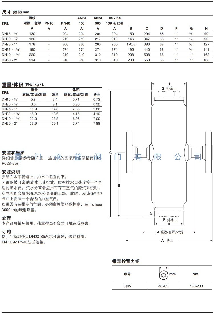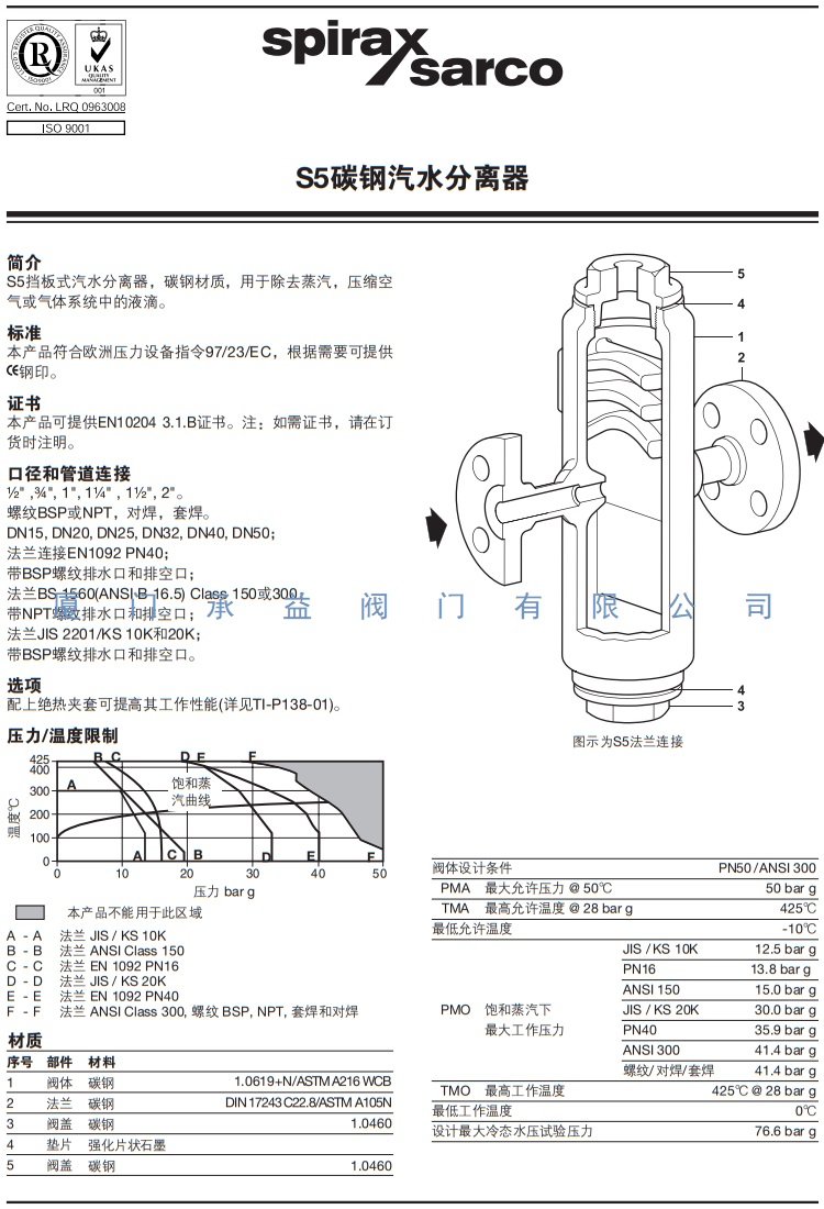 斯派莎克spiraxsarco S5/S6碳钢和不锈钢挡板式汽水分离器 品牌 | 斯派莎克 | ||