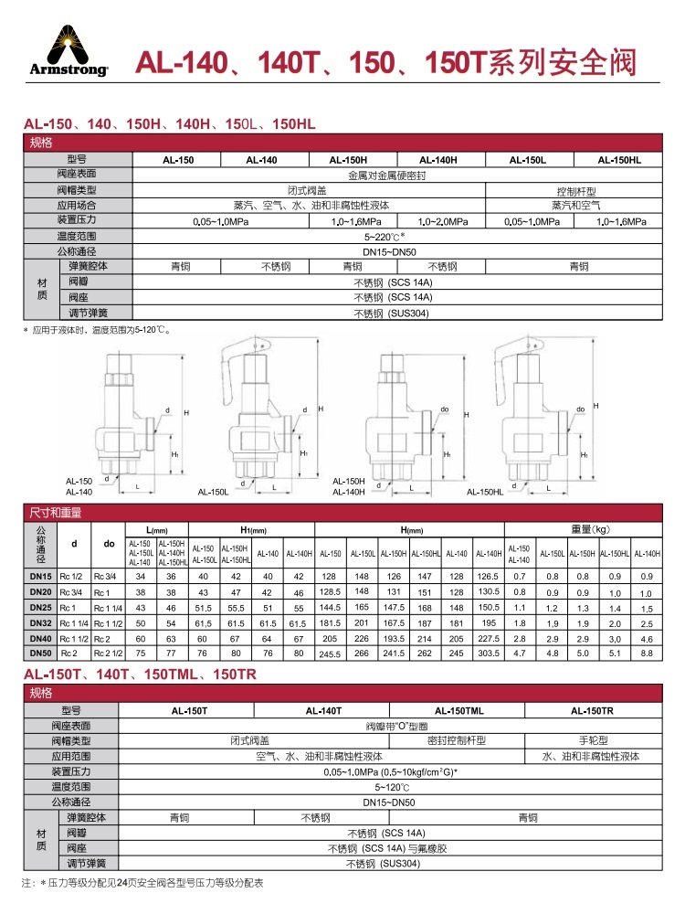 阿姆斯壮Armstrong AL-150H/T系列青铜封闭式 杨程式安全泄压阀 品牌 | 阿姆斯壮 | ||