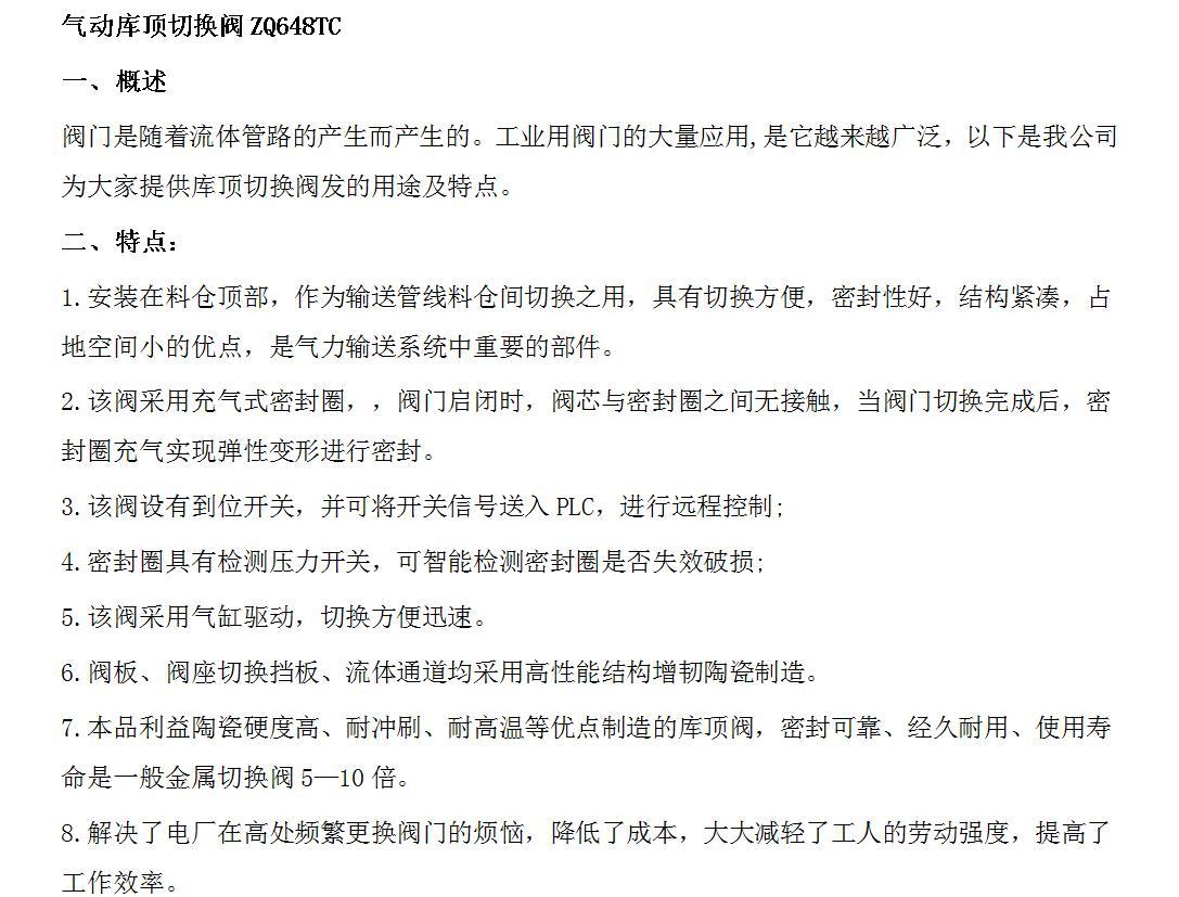 功能用途 | 做为灰库之间切换装置 | ||