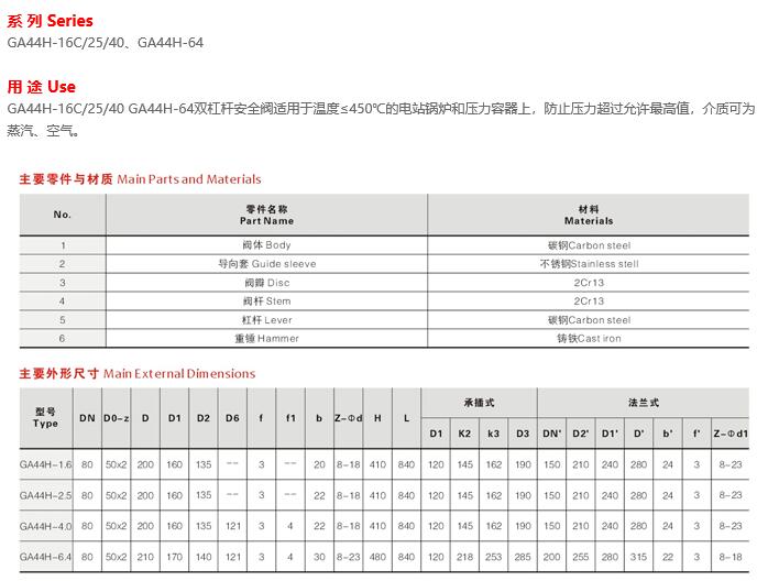 永一GA44H双杠杆安全阀用于电站锅炉和压力容器防止压力超值