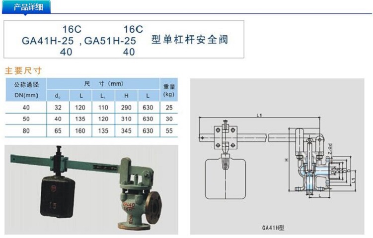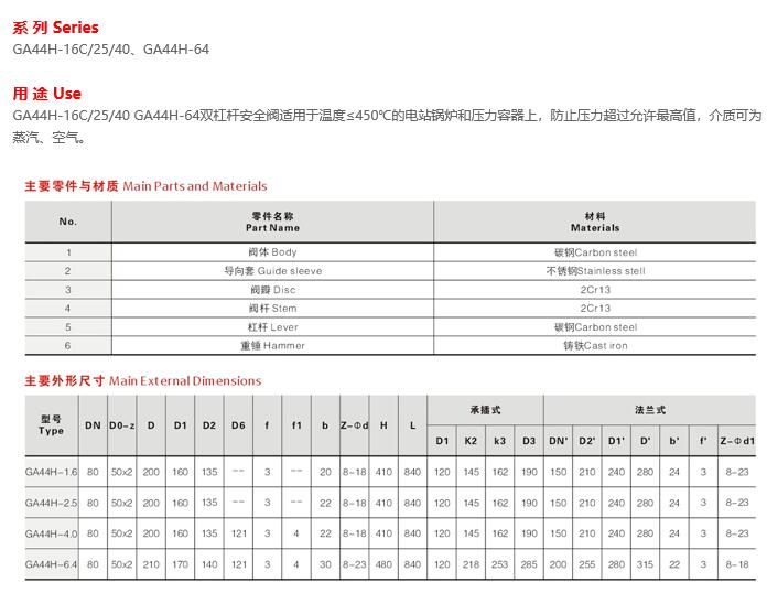 永一 GA41H GA51H单杠杆安全阀 GA44H-16C/25/40GA44H-64双杠杆 公称直径 | 260cm | ||
