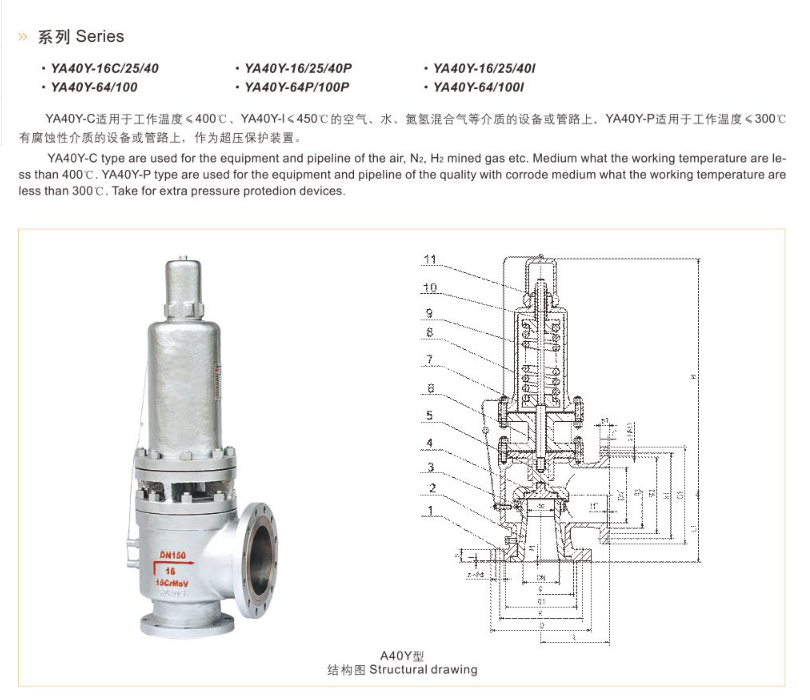 功能用途 | 用于工作温度≤400℃、YA40Y-1≤450C的空气、水、氮氢混合气等介质的设备或管路上 | ||