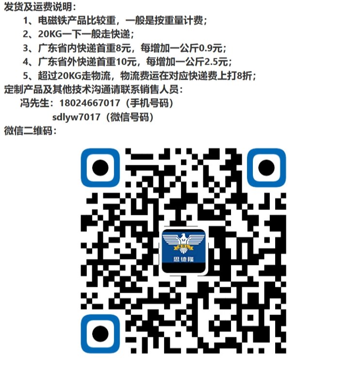 关于本产品的一些说明:? ? ? ? ?1、下单前请联系销售人员核实库存? ? ? ? ?2、经过长时间打样老化? 性能稳定? ? ? ? ?3、客户定制品? 请核查细节参数尺寸再下单? ? ? ? ?4、可以在此产品基础上根据您的需求进行打样?SDL-U1040H电磁铁的应用:? ? ??? ? ? ? ?1、正骨枪敲击动力电磁铁? ? ? ? ?2、家庭按摩枪捶背动力电磁铁? ? ??相关参数:? ? ? ? ?型号:? ??SDL-U1040H-24S31? ? ? ? ?行程:? ? 10mm? ? ? ? ?初始力: 80gf(客服弹簧)? ? ? ? ?电压:? ? DC24V? ? ? ? ?电流:? ? 0.77A? ? ? ? ?电阻:? ? 31欧? ? ? ? ?功率:? ? 18.6W? ? ? ? ?通电率: 10? ? ? ? ?寿命:? ? 500万次? ? ? ? ? ? ? ??产品特点:? ? ? ? ??1、线圈加大,拉推力强;? ? ? ? ?2、框架加固,不会因为震动而散架;? ? ? ? ?3、加装隔音垫,噪音小,双向防震;? ? ? ? ?4、拉杆两端均有凹槽,便于链接;? ? ? ? ?5、采用上饶优质耐高温漆包线,老化慢,性能稳定;? ? ? ? ?6、采用大号导线,降低不必要电损。?外观尺寸图:?使用方法及说明:??? ?发货及运费:? ? ? 1 、电磁铁产品比较重,一般是按重量计费;? ? ? 2、20KG一下一般走快递;? ? ??3、广东省内快递首重8元,每增加一公斤0.9元;? ? ??4、广东省外快递首重10元,每增加一公斤2.5元;? ? ??5、超过20KG走物流,物流费运在对应快递费上打8折;定制产品及其他技术沟通请联系销售人员:? ? ? 冯先生:18024667017(手机号码)? ? ? ? ? ? ? ? ? sdlyw7017(微信号码)微信二维码:下单发货事宜请联系跟单人员:? ? ? 彭小姐:18024661105(手机号码)? ? ? ? ? ? ? ? ? sdl18024661105(微信号码)微信二维码:源头工厂!工厂场地实拍!? ? ??广州思德隆电子有限公司(http://www.gdsdl.cn)创立于2005年,是一家专业生产研发跳跳球爪子线圈加工,小型电磁铁,游戏机电磁铁等各类电磁产品,拥有丰富行业经验的电磁阀厂家、螺线管厂家、电磁线圈厂家。?? ? ? ?品种多样,规格齐全,产品从零部件到成品组装均有自己的加工设备以及产生线,拥有高精密度检测仪器和自主研发的老化设备,交流220VE型框架电磁铁、振动盘用牵引电磁铁产品设计到样品以及量产,均有量化高效的工艺流程及老化实验检测,保证了产品的质量与订单的按时交货。?