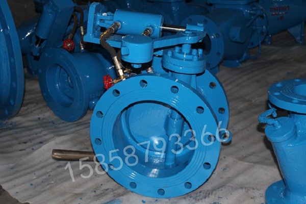 液力自动阀bfdz701主要由阀体、蝶板、调节阀、缓冲液压缸等组成。外部由调节阀连接。当水泵启动时,阀板在进口端水力和驱动液压缸下腔水力作用下缓慢开启至全开。关闭时介质回流推动阀板和活塞上腔回水压力的作用下迅速关闭90%截断大部分水流,再由缓闭液压缸阻尼进行缓闭,减弱回水压力的冲击,消除破坏性水锤。