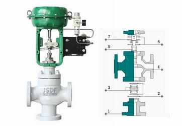 气动三调节阀阀体为三通结构,即一进两出(分流型),两进一出(合流型),其中三通合流调节阀用于将两种流体混合成第三种流体,或两种不同温度的同种流体,混合成同一温度流体。而三通分流阀则是将一种流体分成两路流体。