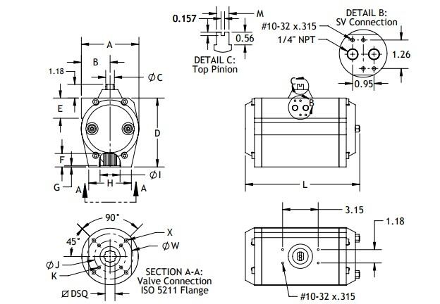 MAX-AIR齿条齿轮气动执行器产生采用相同的紧凑设计的线性扭矩输出用于双作用和弹簧复位的阀体和端盖单位。所有的Namur VDI / VDE 3845和ISO 5211尺寸大小。安装电磁阀不需要特殊的块阀门,限位开关或定位器。标准旋转角度为90°。额外的旅行可以旋转180°。适用于MT08的尺寸通过MT66,Max-Air执行器具有双行程限位功能在开口和开口处提供±10°行程旋转执行器行程的关闭阶段。 110°的旅行标准90°执行器!母齿轮传动装置标配双方形输出驱动器,可选配双D驱动器,带键驱动和设计,以满足您的特定要求。